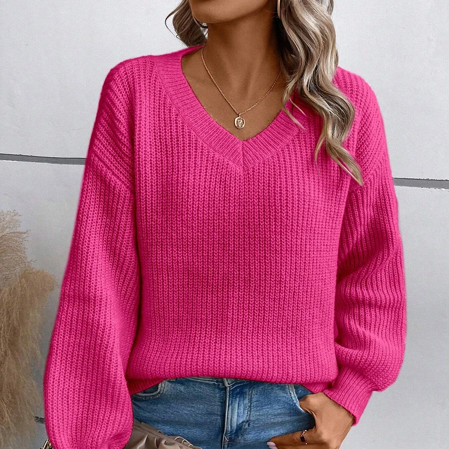 OEM Wholesale Autumn Winter New Solid Color Sweater Custom Embroidery Logo Casual Solid Color Knit Standard Sweater Women
